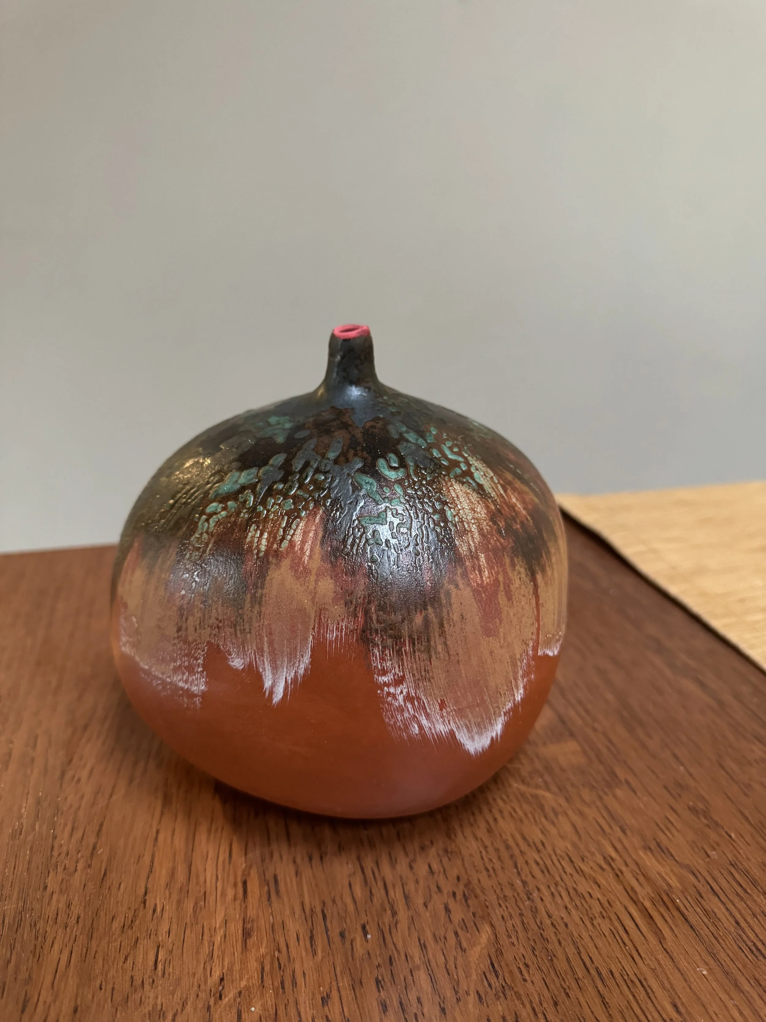 Image 1 of 5 Image 2 of 5 Image 3 of 5 Image 4 of 5 Image 5 of 5 Squarish vestigial vessel $135.00 Decorative Terra cotta design with vestigial opening and red accent. Mixed glazes over Terra sig. Quantity: Add To Cart Added! Decorative Terra cotta design with vestigial opening and red accent. Mixed glazes over Terra sig.